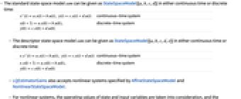 - The standard state-space model ssm can be given as StateSpaceModel[{a,b,c,d}] in either continuous time or discrete time: