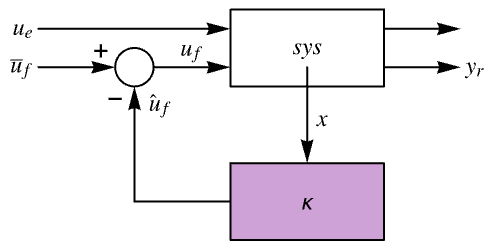 is the computed gain matrix. - The inputs u of sys consist of feedback inputs uf and possibly other inputs ue.