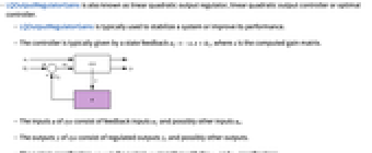 - LQOutputRegulatorGains is typically used to stabilize a system or improve its performance.
