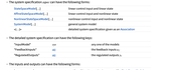 "InputModel" sys any one of the models "FeedbackInputs" All the feedback inputs uf "RegulatedOutputs" All the regulated outputs yr - The inputs and outputs can have the following forms:
