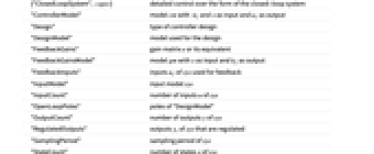 as input and y as output{"ClosedLoopSystem", cspec} detailed control over the form of the closed-loop system "ControllerModel" model cm with