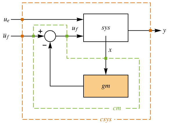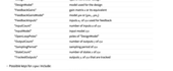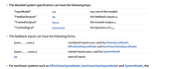 "InputModel" sys any one of the models "FeedbackInputs" All the feedback inputs uf "TrackedOutputs" None the tracked outpus yt "TrackedSignal" Automatic the dynamics of yref - The feedback inputs can have the following forms: