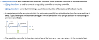 - LQRegulatorGains is used to compute a regulating controller or tracking controller.