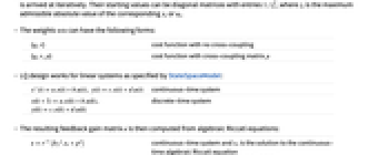 is the computed gain matrix. - The quadratic cost function with weights q, r and p of the states x and feedback inputs uf: