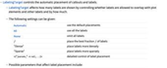 - LabelingTarget affects how many labels are shown by controlling whether labels are allowed to overlap with plot elements and other labels and by how much.