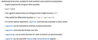 - LaguerreL can be used with Interval and CenteredInterval objects. »