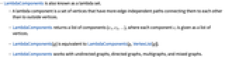 - LambdaComponents returns a list of components {c1,c2,…}, where each component ci is given as a list of vertices.
