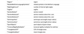axis"RealWorldExamples" real-world examples "Region" region "RelatedWolframLanguageSymbols" related symbols in the Wolfram Language "RightAngleCount" number of internal right angles "Sagitta" sagitta "SectionModuli" section moduli "SectionModulusX" section modulus about the