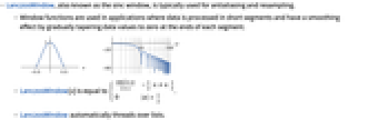 - LanczosWindow, also known as the sinc window, is typically used for antialiasing and resampling.
