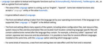 - The value of the Language option is a string, such as "English", "Spanish". Some text-related functions also accept a "Language" entity or the value Automatic.
