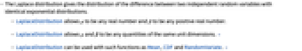 - LaplaceDistribution allows μ to be any real number and β to be any positive real number.