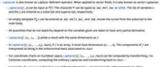 - Laplacian[f,{x1,x2,…}] yields a result with the same dimensions as f.