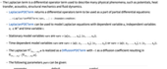 - LaplacianPDETerm returns a differential operators term to be used as a part of partial differential equations: