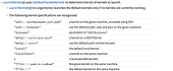 - LaunchKernels[] (no arguments) launches the default kernels only if no kernels are currently running.
