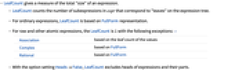 - For ordinary expressions, LeafCount is based on FullForm representation.