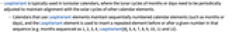 - Calendars that use LeapVariant elements maintain sequentially numbered calendar elements (such as months or days), and the LeapVariant element is used to insert a repeated element before or after a given number in that sequence (e.g. months sequenced as 1, 2, 3, 4, LeapVariant[4], 5, 6, 7, 8, 9, 10, 11 and 12).