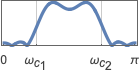 {"Bandpass",{ωc1,ωc2}} bandpass filter with passband from ωc1 to ωc2