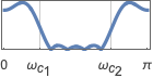 {"Bandstop",{ωc1,ωc2}} bandstop filter with stopband from ωc1 to ωc2