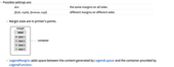 - LegendMargins adds space between the content generated by LegendLayout and the container provided by LegendFunction.