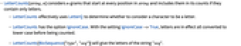 - LetterCounts effectively uses LetterQ to determine whether to consider a character to be a letter.