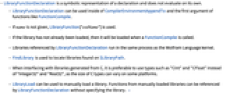 - LibraryFunctionDeclaration is a symbolic representation of a declaration and does not evaluate on its own.