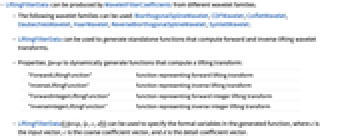 - LiftingFilterData can be produced by WaveletFilterCoefficients from different wavelet families.