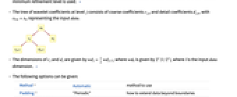 for constant padding. - With the setting Method->"IntegerLifting", integer data will transform to integer coefficients, in which case input image data of type "Real" is converted to type "Byte".