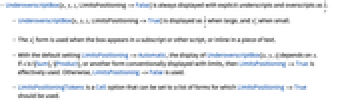 - UnderoverscriptBox[x,y,z,LimitsPositioning->False] is always displayed with explicit underscripts and overscripts as