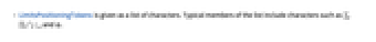 - LimitsPositioningTokens is given as a list of characters. Typical members of the list include characters such as