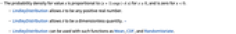 - LindleyDistribution[δ] represents a statistical distribution supported on the interval