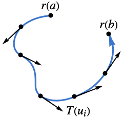 over the curve. - For a parametric curve ParametricRegion[{r1[u],…,rn[u]},…], the tangent vector field