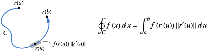 - The scalar line integral of the function f along a curve