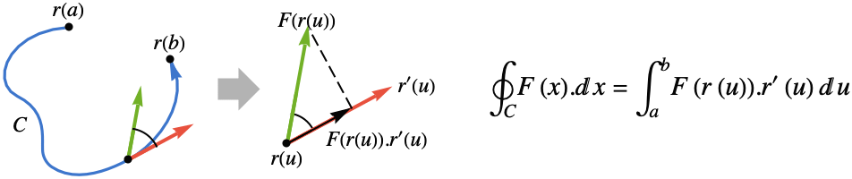 - The vector line integral of the function F along a curve