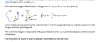 onto the tangent direction so only the component in the tangent direction gets integrated. - The vector line integral is independent of the parametrization of the curve, but it does depend on the orientation of the curve.