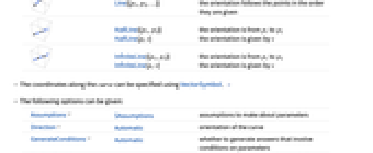InfiniteLine[p,v]the orientation is from p1 to p2 the orientation is given by v - The coordinates along the curve can be specified using VectorSymbol. »
