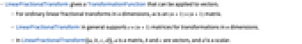 - LinearFractionalTransform gives a TransformationFunction that can be applied to vectors.
