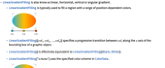 - LinearGradientFilling["scheme"] uses the specified color scheme in ColorData.