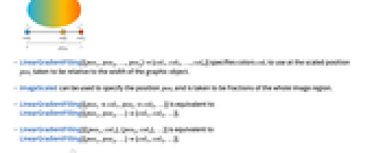 - LinearGradientFilling[{pos1col1,pos2col2,…}] is equivalent to LinearGradientFilling[{pos1,pos2,…}{col1,col2,…}].