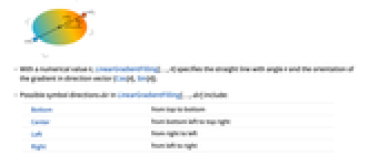 - Possible symbol directions dir in LinearGradientFilling[…,dir] include: