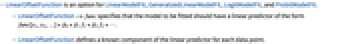 - LinearOffsetFunction defines a known component of the linear predictor for each data point.