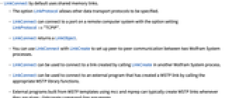 - LinkConnect can be used to connect to a link created by calling LinkCreate in another Wolfram System process.
