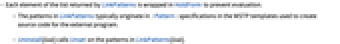 - The patterns in LinkPatterns typically originate in :Pattern: specifications in the WSTP templates used to create source code for the external program.