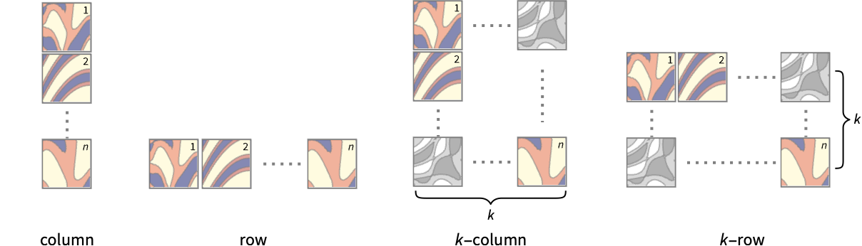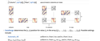 "Column" use separate contours in a column of panels "Row" use separate contours in a row of panels {"Column",k},{"Row",k} use k columns or rows {"Column",UpTo[k]},{"Row",UpTo[k]} use at most k columns or rows - DataRange determines the {x,y} position for value fij in the array {{f11,…,f1n},…,{fm1,…,fmn}}. Possible settings include: