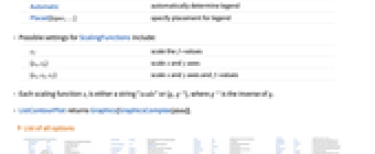 None no legend Automatic automatically determine legend Placed[lspec,…] specify placement for legend - Possible settings for ScalingFunctions include: