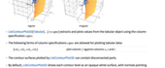 for regular data and the convex hull of {{x1,y1,z1},…,{xn,yn,zn}} for irregular data. - ListContourPlot3D[Tabular[…]cspec] extracts and plots values from the tabular object using the column specification cspec.