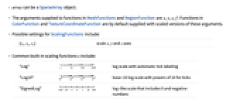 - The arguments supplied to functions in MeshFunctions and RegionFunction are x, y, z, f. Functions in ColorFunction and TextureCoordinateFunction are by default supplied with scaled versions of these arguments.
