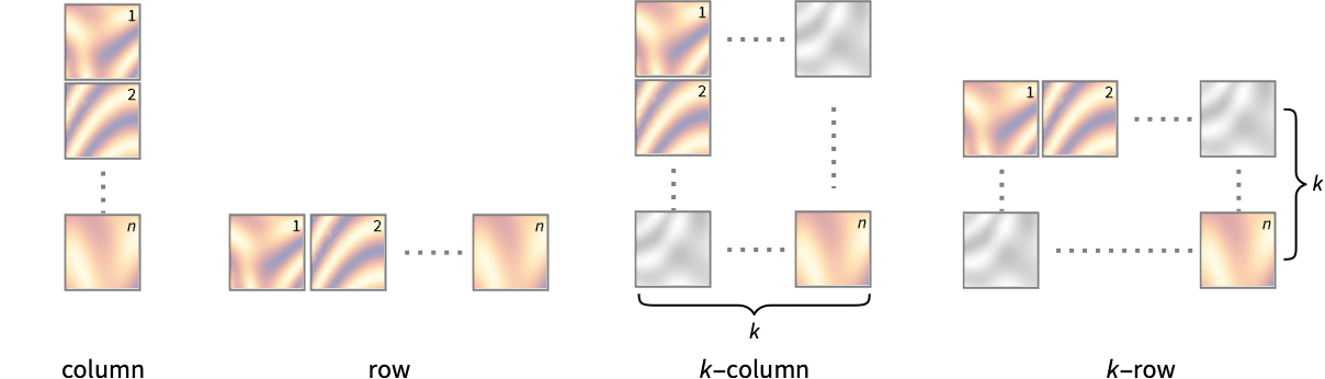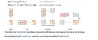 "Column" use separate densities in a column of panels "Row" use separate densities in a row of panels {"Column",k},{"Row",k} use k columns or rows {"Column",UpTo[k]},{"Row",UpTo[k]} use at most k columns or rows - The setting for VertexColors must be an array or list with the same structure as the array or list of values.