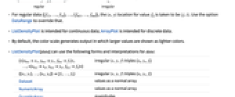 - ListDensityPlot[data] can use the following forms and interpretations for data: