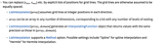 - ListInterpolation[array] assumes grid lines at integer positions in each direction.