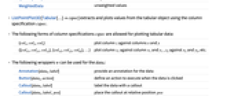 - The following forms of column specifications cspec are allowed for plotting tabular data: